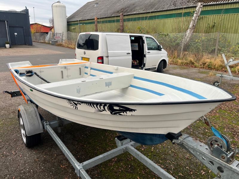 Fin 14-fods Crescent jolle som er perfekt til fiskeri & gode stunder på havet. Perfekt til fiskeri i alle danske farvande i denne meget stabile jolle fra Svenske Crescent. God plads rundt i båden, og rigtig fine siddepladser. Bådens vægt ca. 150kg, længde 4,15m, bredde 1,80m.