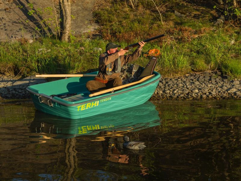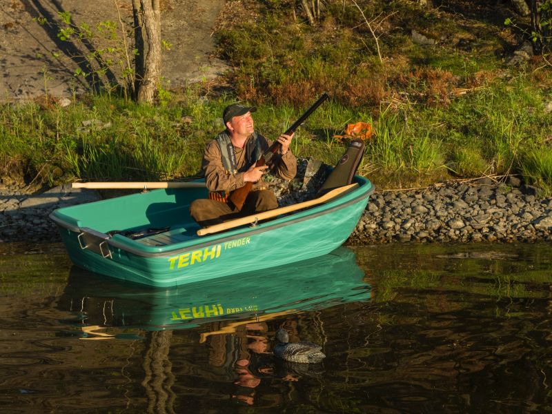Terhi Tender er fremragende som en slæbejolle eller tender til en større båd eller som den første båd til familiens yngste skipper. Praktisk og ubesværet at ro, let at løfte og ligger godt efter en større båd uden at sinke farten. Takket være dens katamaran-skrog er Tender ekstremt stabil og sikker. Under sædet, der er i længderetningen, er et aflåseligt rum til årer og andet tilbehør. Tender Green, der består af et grønt skrog såvel som et grønt interiør, er et fremragende valg for dem, der nyder at lure på fugle eller jage på havet.